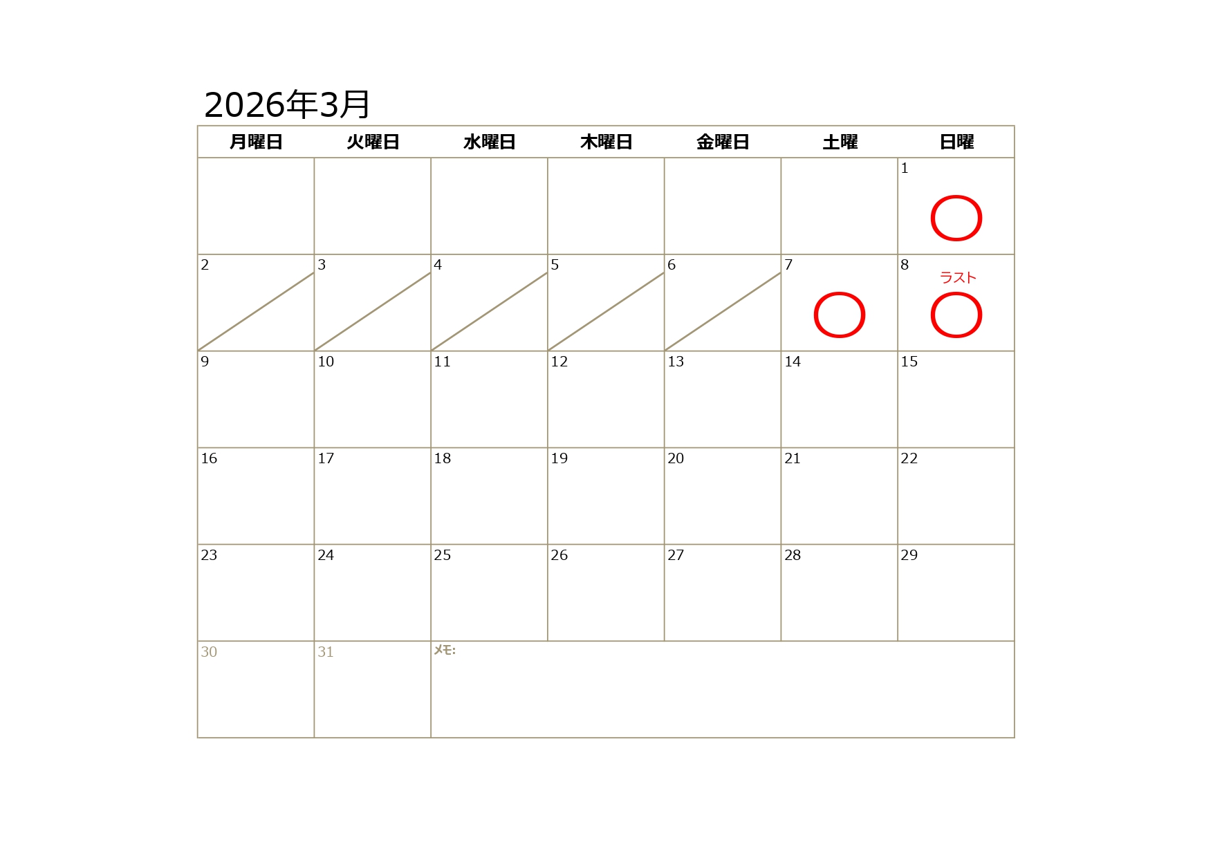 令和8年1月10日から3月8日までの土曜日、日曜日、祝日