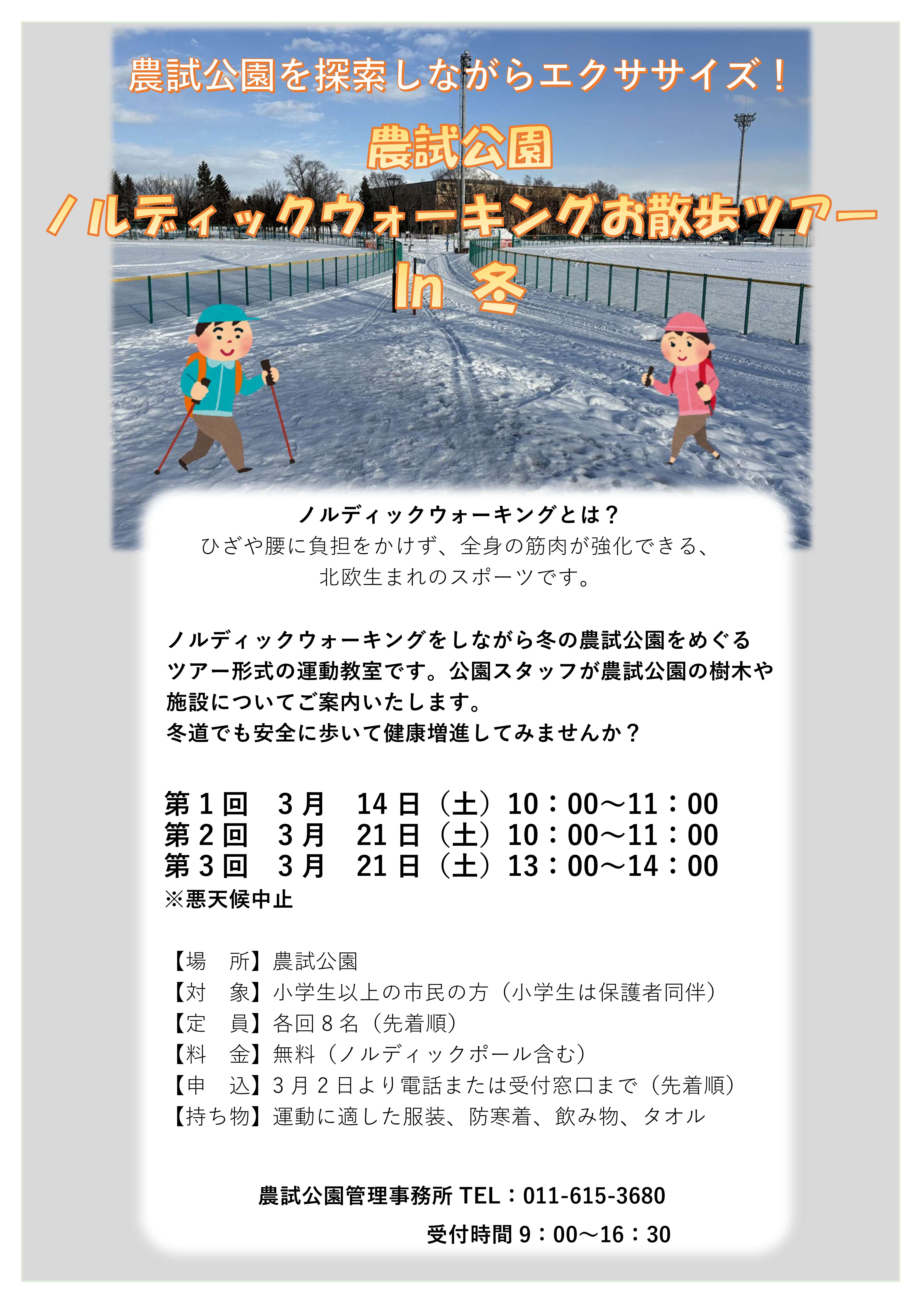 【農試公園】農試公園ノルディックウォーキングお散歩ツアー in 冬 開催のお知らせ
